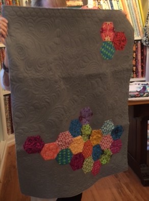 Lots of eye candy at this meeting at The Little General. We focused on quilts made from the Hexnmore ruler from Jaybird Quilts. It’s such a great ruler with so many possibilities!