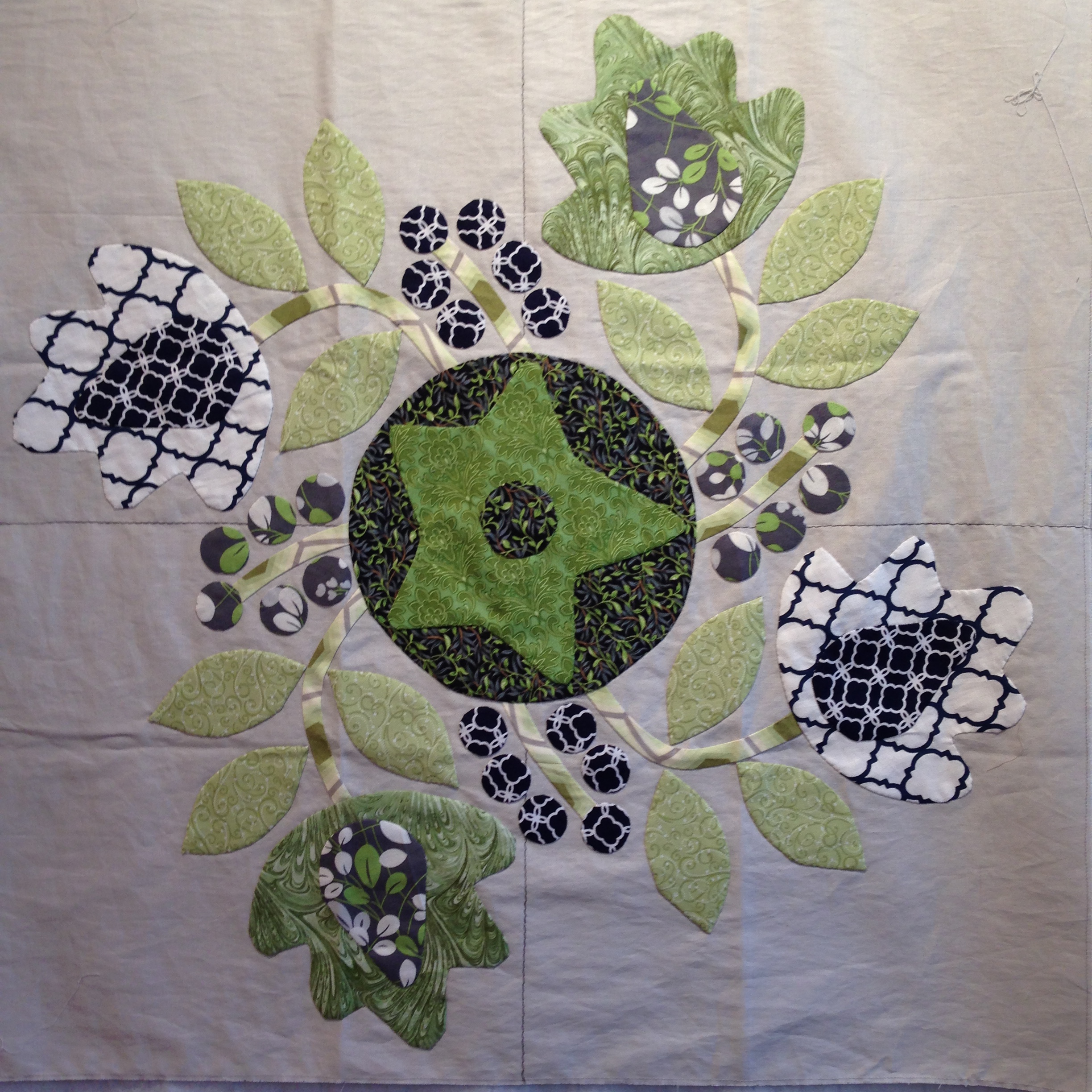 IMG_5209Here’s Jennifer’s fourth block.  We loved her berries so much that she has decided to go back and add more to her other blocks.  HAHA