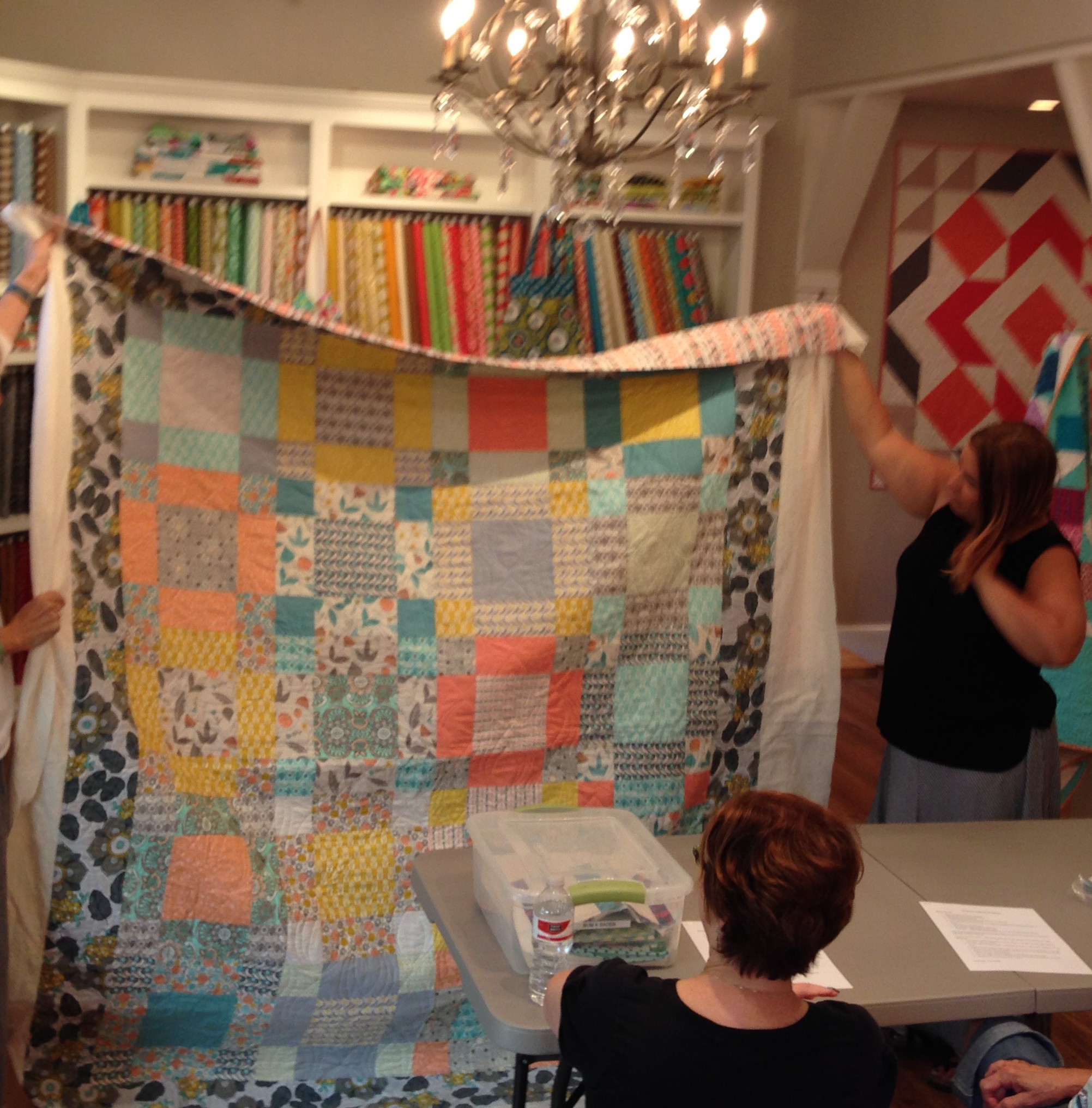 This little log cabin is also Carole’s. She machine stitched her binding on both of these. We were impressed!