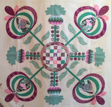 Finished. Ann sent me this picture several days ago. It is so pretty! It’s on its way to Theresa DeWalt to be quilted.