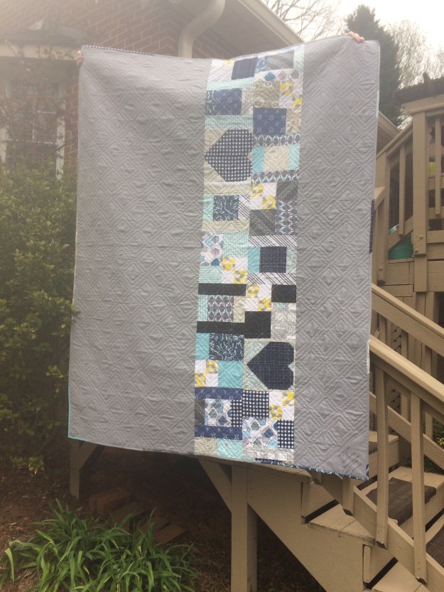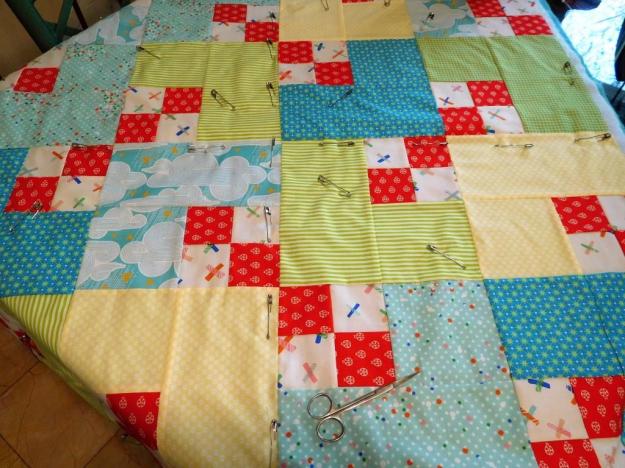 Amelia made this quilt for her grandchild.  She’s getting ready to machine quilt it herself.  It’s a happy quilt!