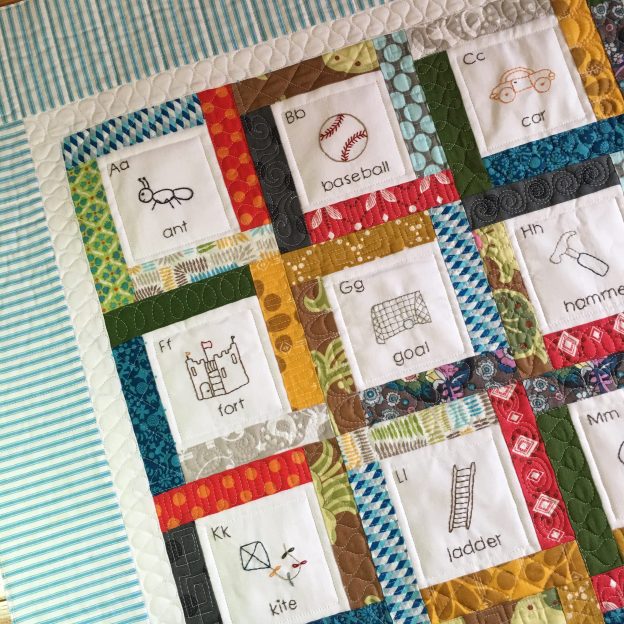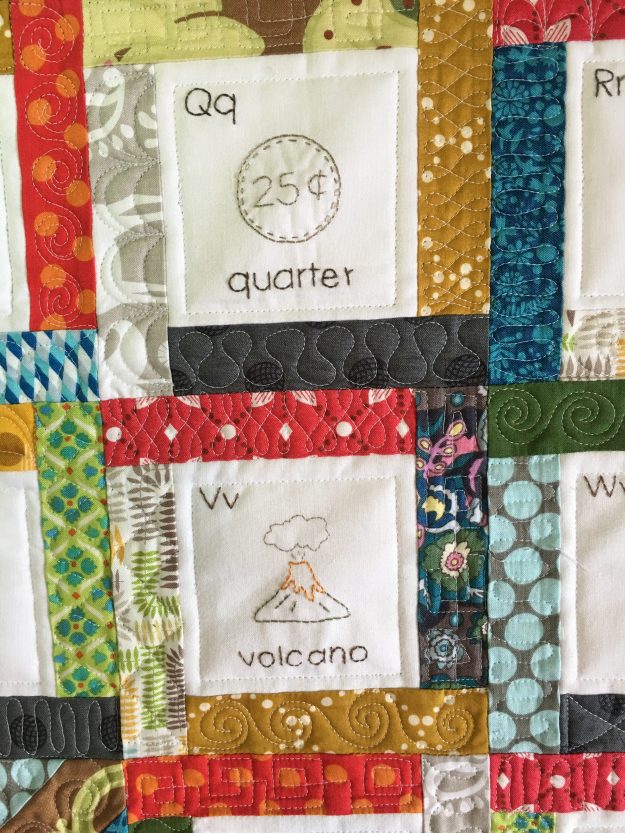 I am in love with my alphabet quilt sampler from S is for Stitch. The book is out of print but Village Fabric Shop did some digging and found some copies so if this inspires you, just e-mail Amy.