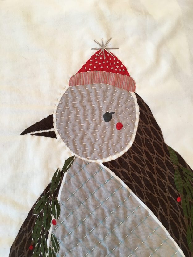 Alison continues her big stitch hand quilting.