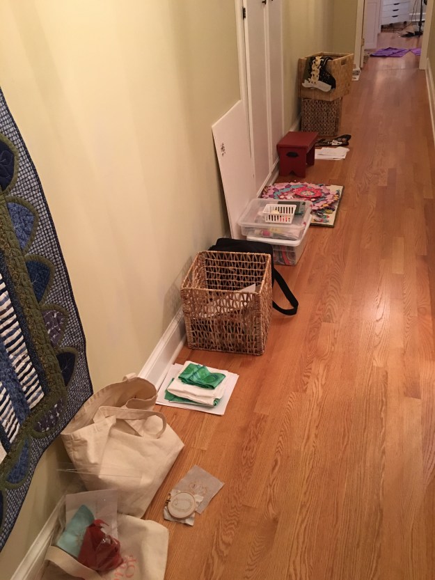 I started November with a week full of classes. Not a bad problem to have. I use my hall as a staging area. This is what it looked like on Sunday.