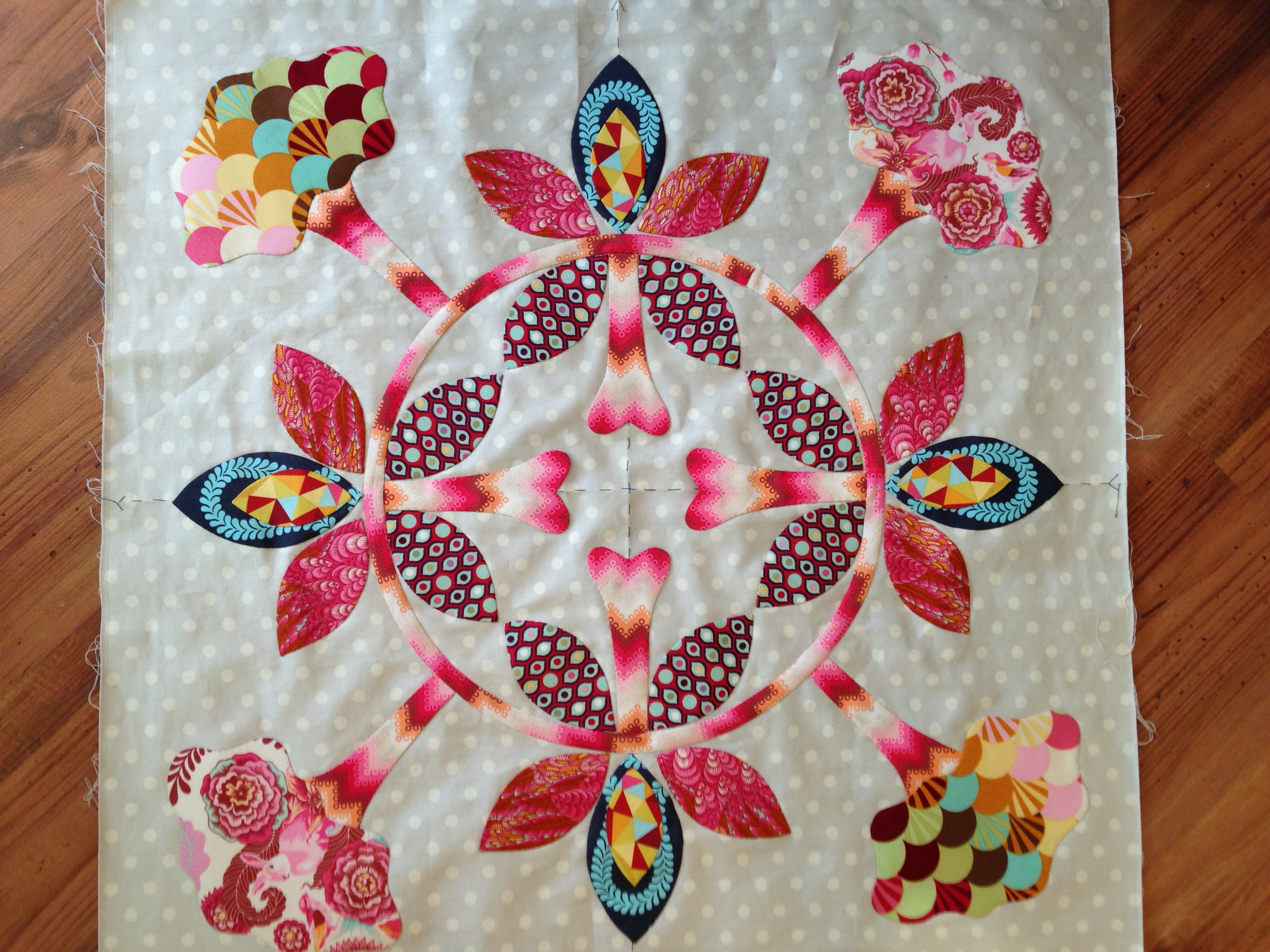She’s also the student who taught me about dangling threads. See that silk thread? When she places her next piece of applique, she will thread her needle with that thread and finish stitching. No need to tie off or start over. Genius.
