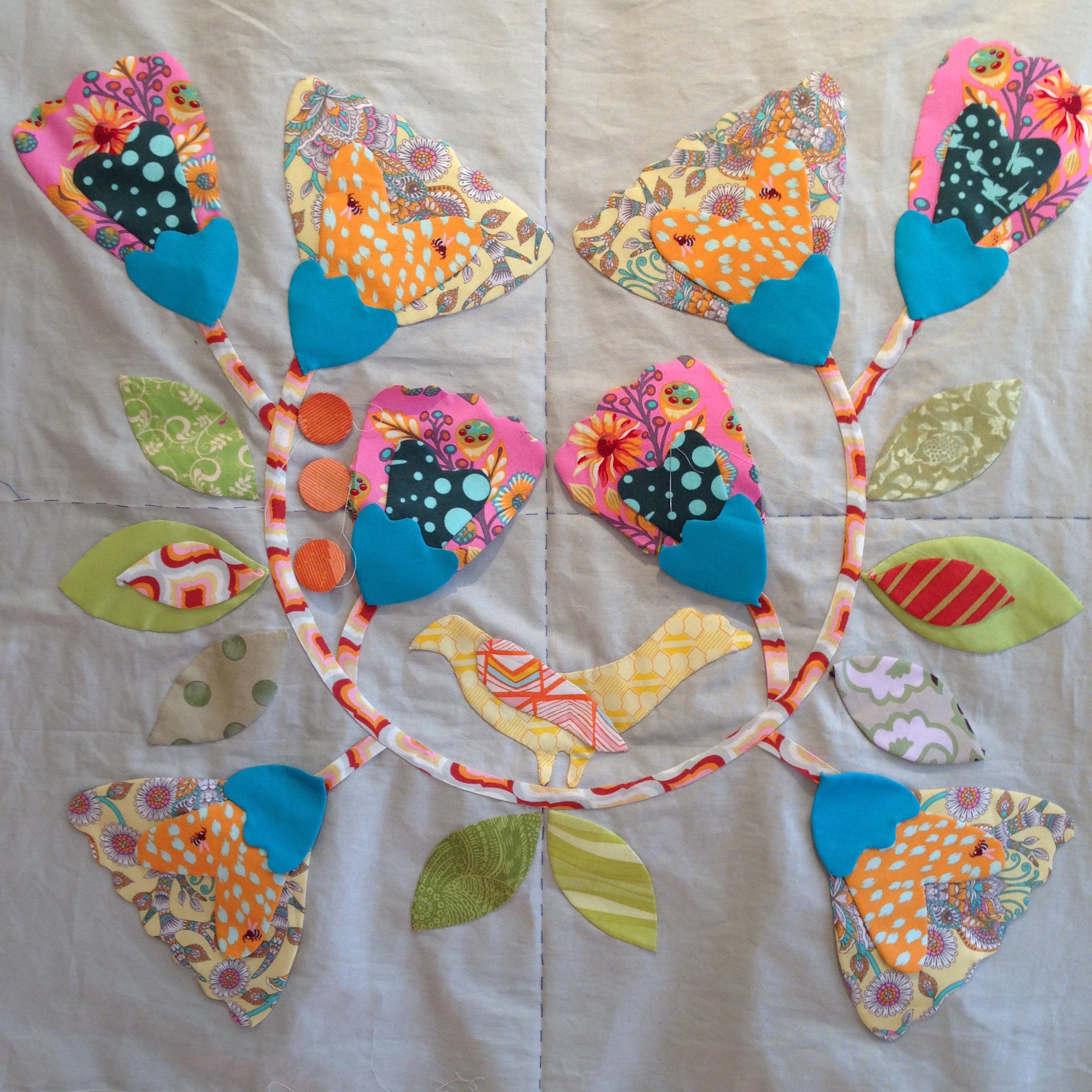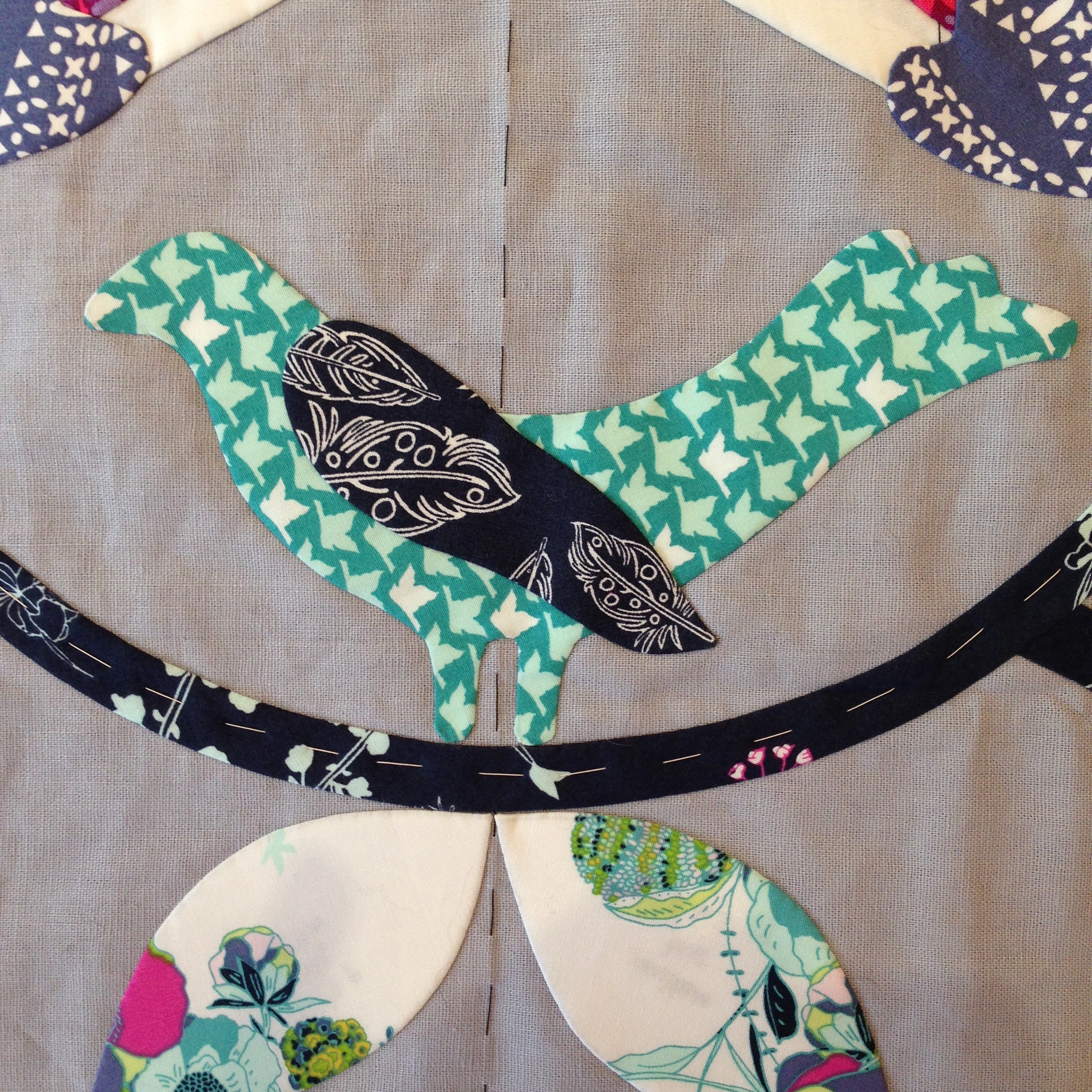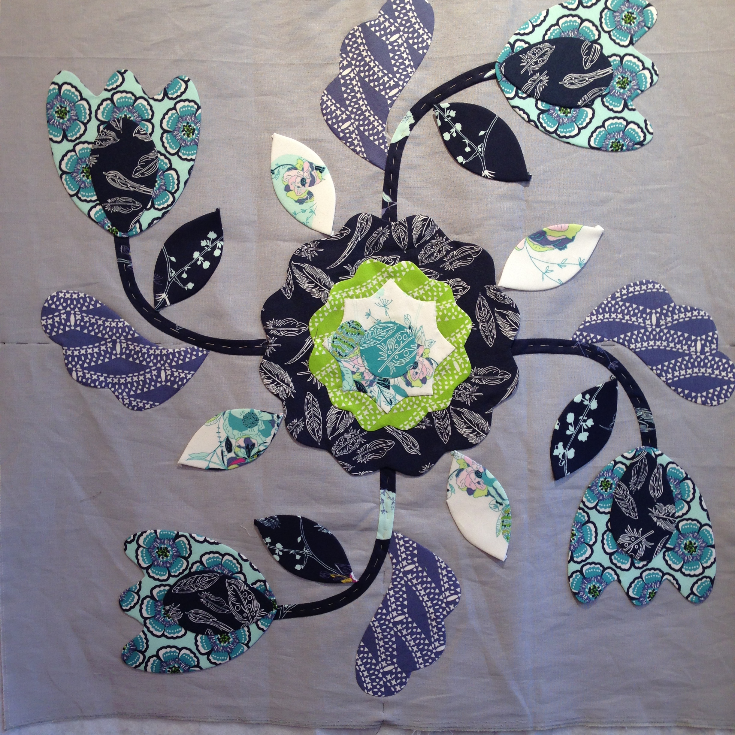 Here’s Beverly’s TThicket using flax Essex linen for the background and Liberty fabrics for the applique. It feels wonderful.