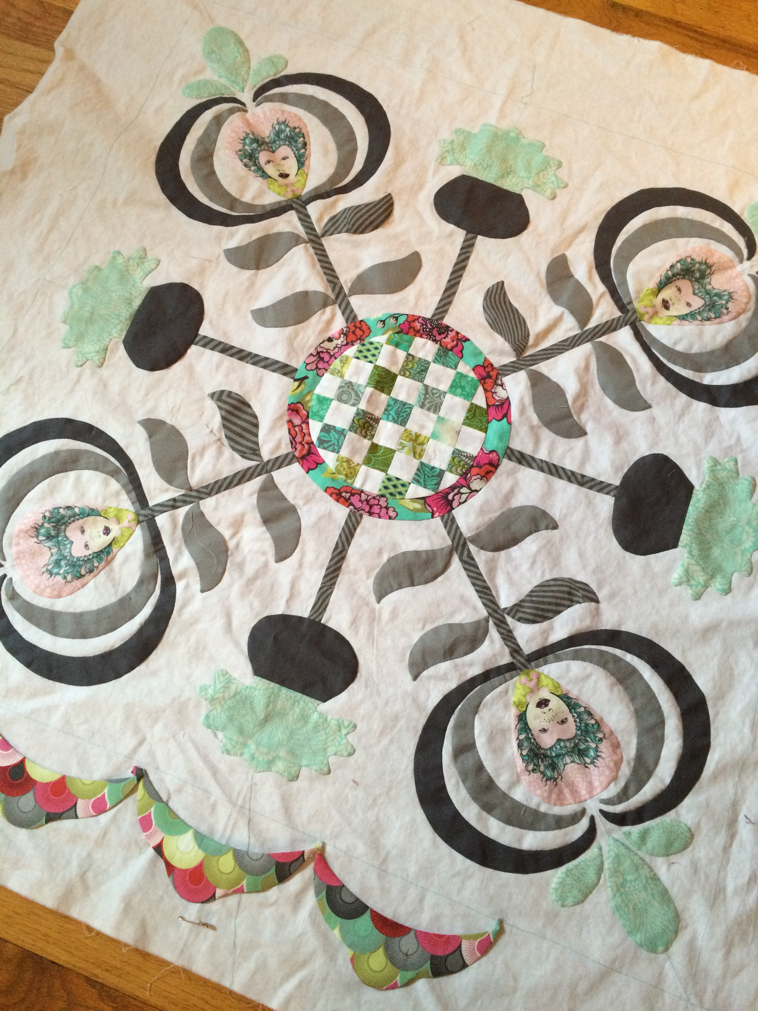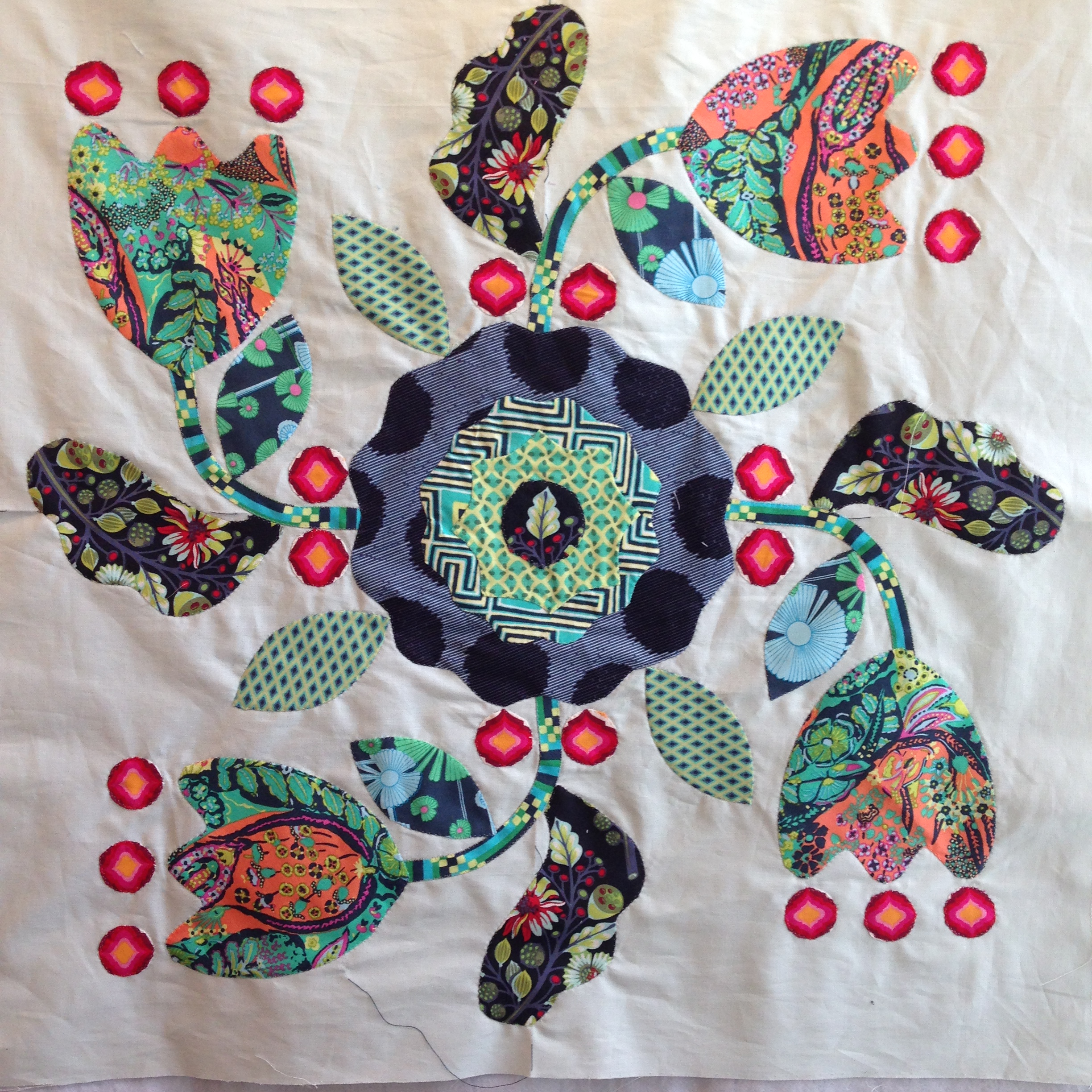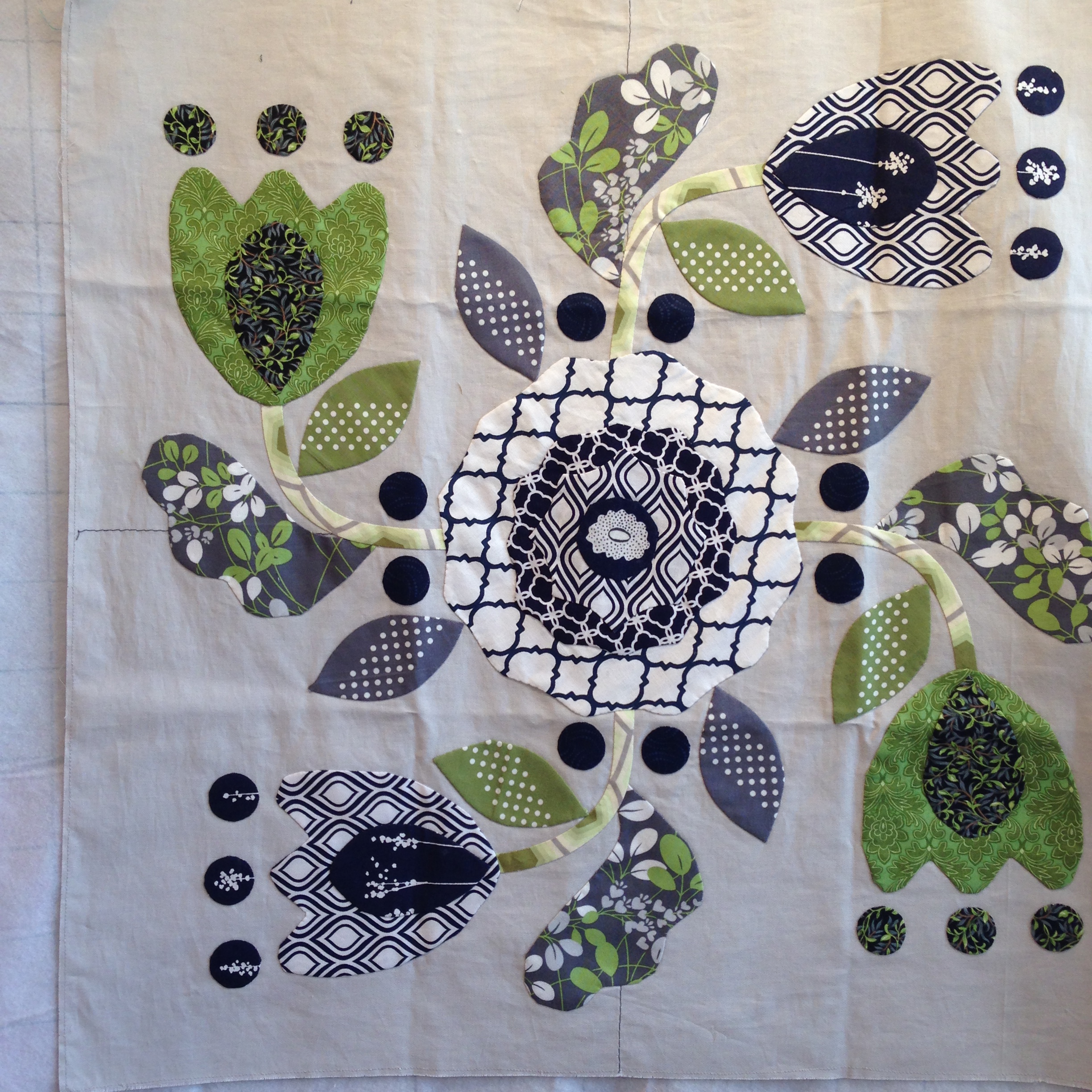 Here’s Beverly’s TThicket using flax Essex linen for the background and Liberty fabrics for the applique. It feels wonderful.