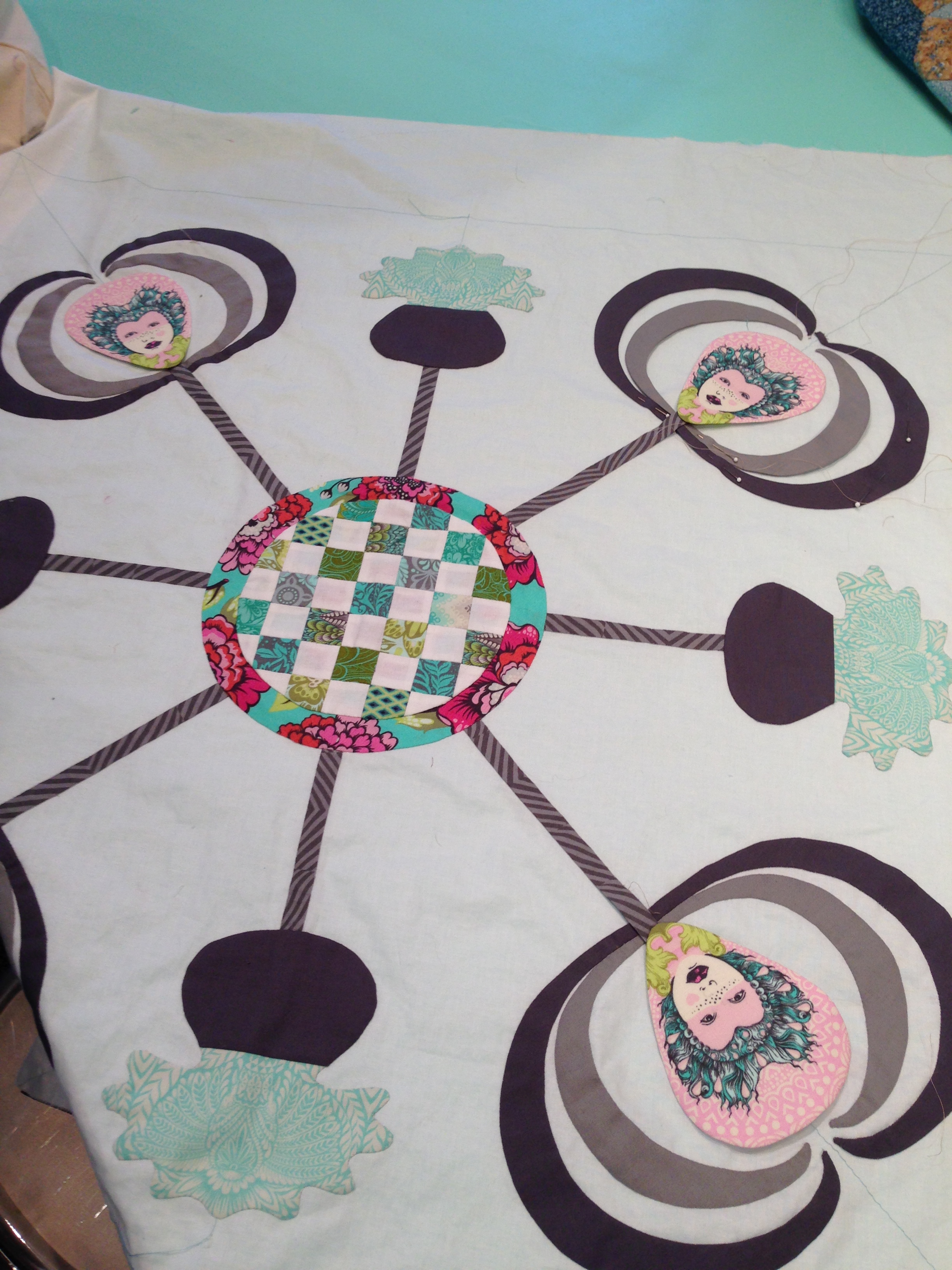 Here’s her patchwork border and her outer border. Just a little more applique. 🙂